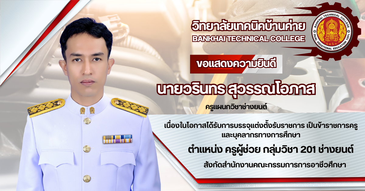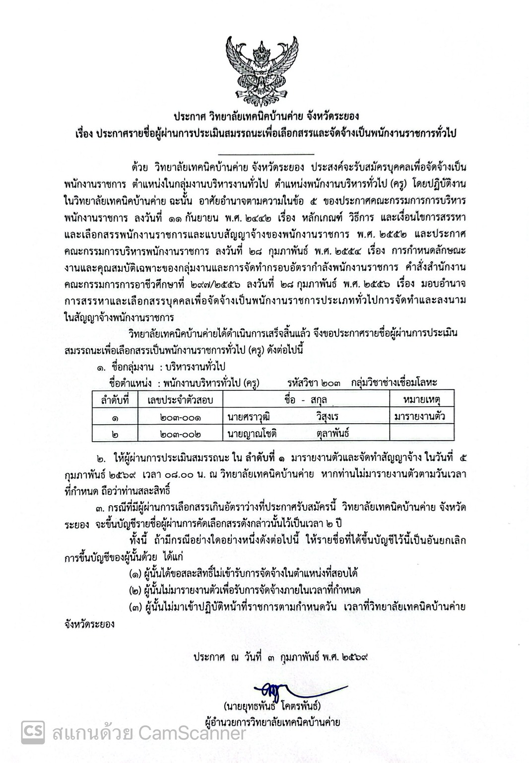 ประกาศวิทยาลัยเทคนิคบ้านค่าย วิทยาลัยเทคนิคบ้านค่ายขอประกาศรายชื่อผู้มีสิทธิ์เข้ารับการประเมินสมรรถนะครั้งที่ 2 ในตำแหน่ง พนักงานบริหารทั่วไป (ครู) กลุ่มวิชาช่างเชื่อมโลหะ (รหัสวิชา 203)