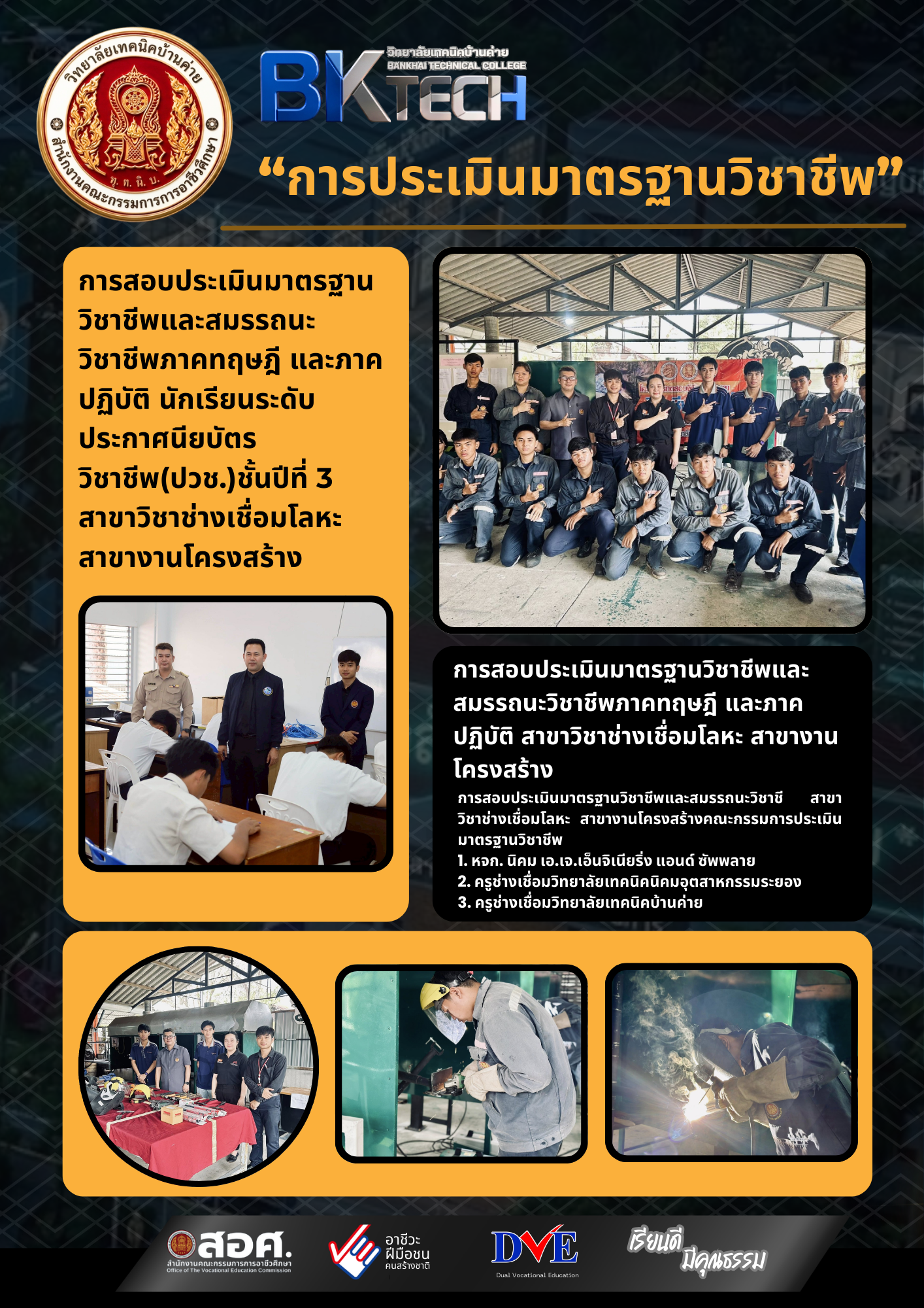 ได้รับคุณวุฒิวิชาชีพตามมาตรฐานอาชีพ สาขาเทคโนโลยีการเชื่อมอุตสาหกรรม อาชีพนักเทคโนโลยีการเชื่อมอุตสาหกรรม ระดับ 4