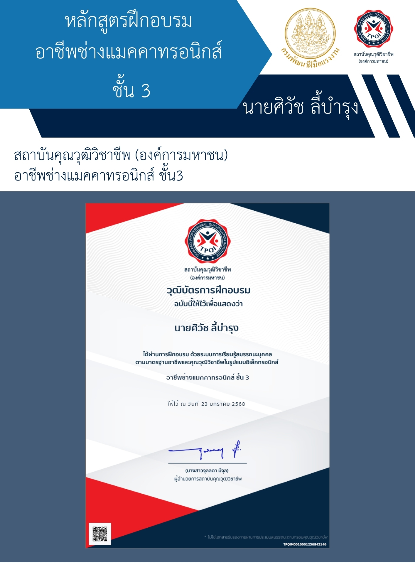อาชีพช่างแมคคาทรอนิกส์ ชั้น3