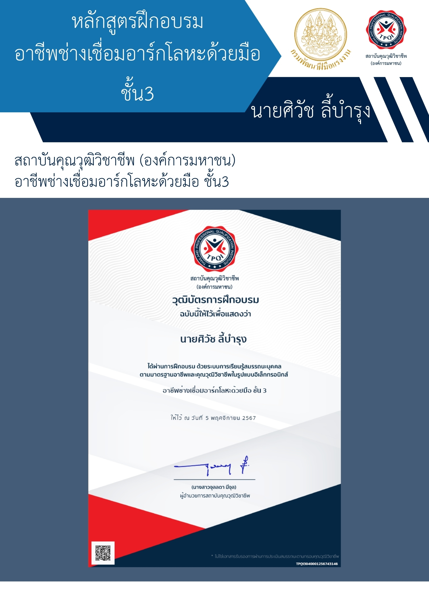 อาชีพช่างเชื่อมอาร์กโลหะด้วยมือ ชั้น3