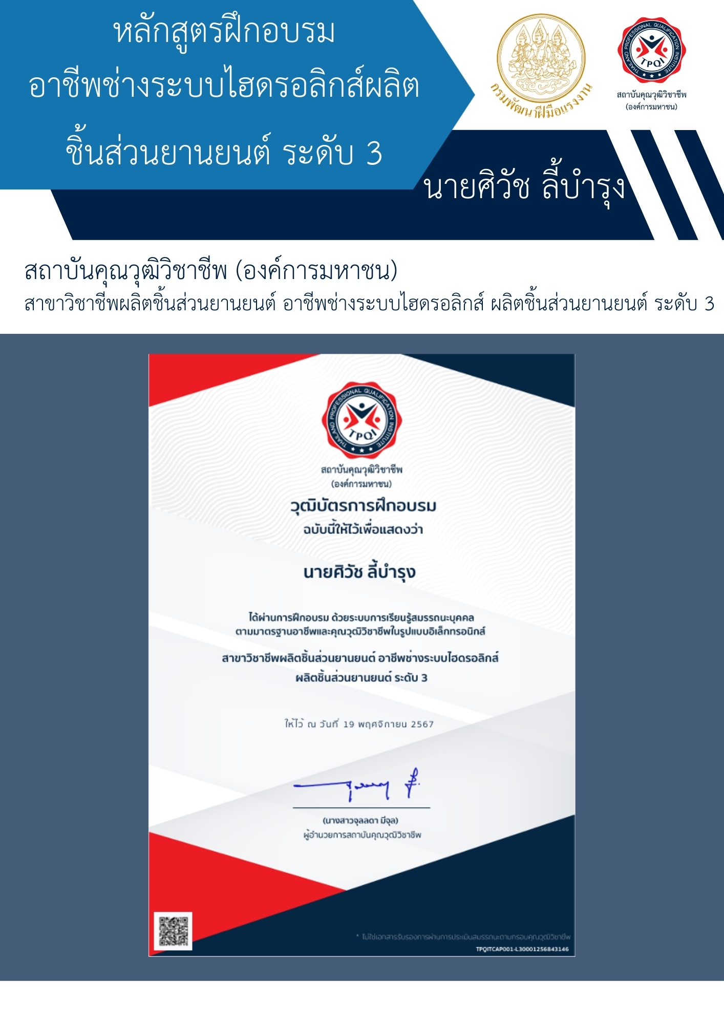 สาขาวิชาชีพผลิตชิ้นส่วนยานยนต์ อาชีพช่างระบบไฮดรอลิกส์ ผลิตชิ้นส่วนยานยนต์ ระดับ 3