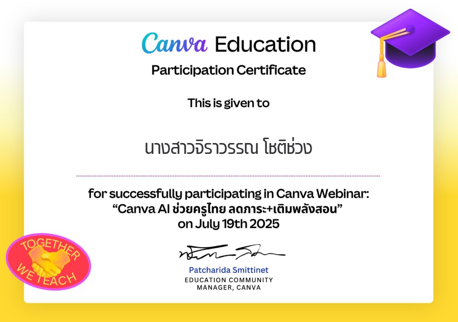 -CERTIFICATE of PARTICPATION CANVA AI ช่วยครูไทยลดภาระ+เติมพลังสอน'