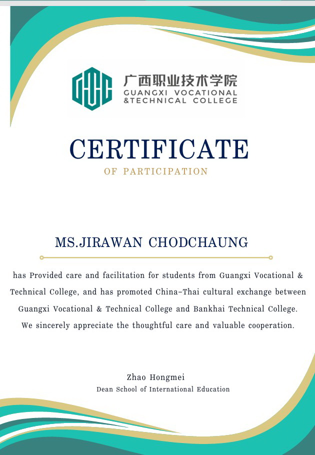 -CERTIFICATE of PARTICPATION GUANGXI VOCATIONAL & TECHNICAL COLLEGE
