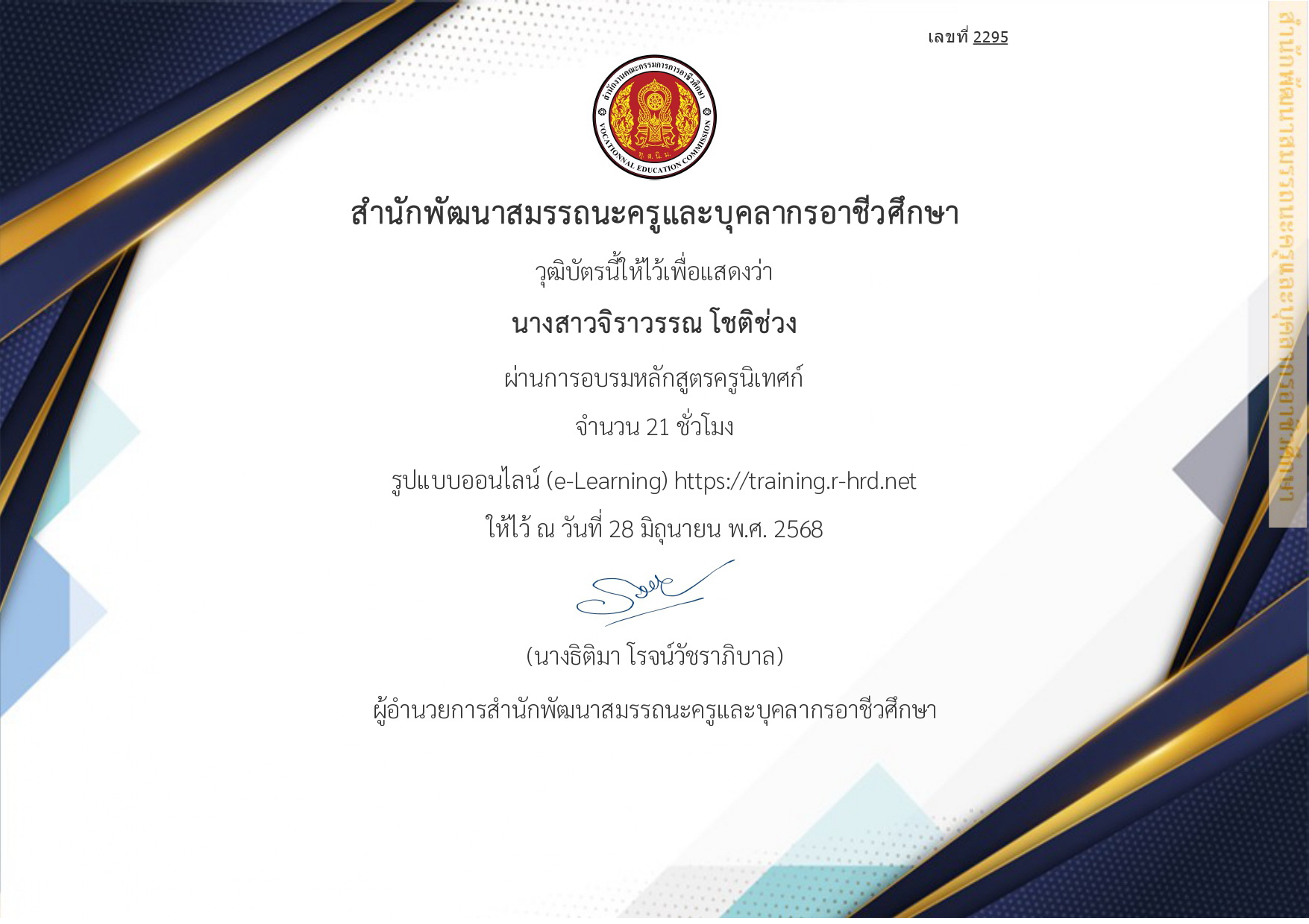 -ใบประกาสนียบัตร อบรมหลักสูตรครุนิเทศก์ จำนวน 21 ชั่วโมง สำนักงานสมรรถนะครูและบุคลากรอาชีวศึกษา