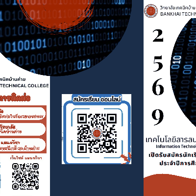รับสมัครนักศึกษาแผนกวิชาเทคโนโลยีสารสนเทศ ระดับชั้น ปวส. ปีการศึกษา 2569