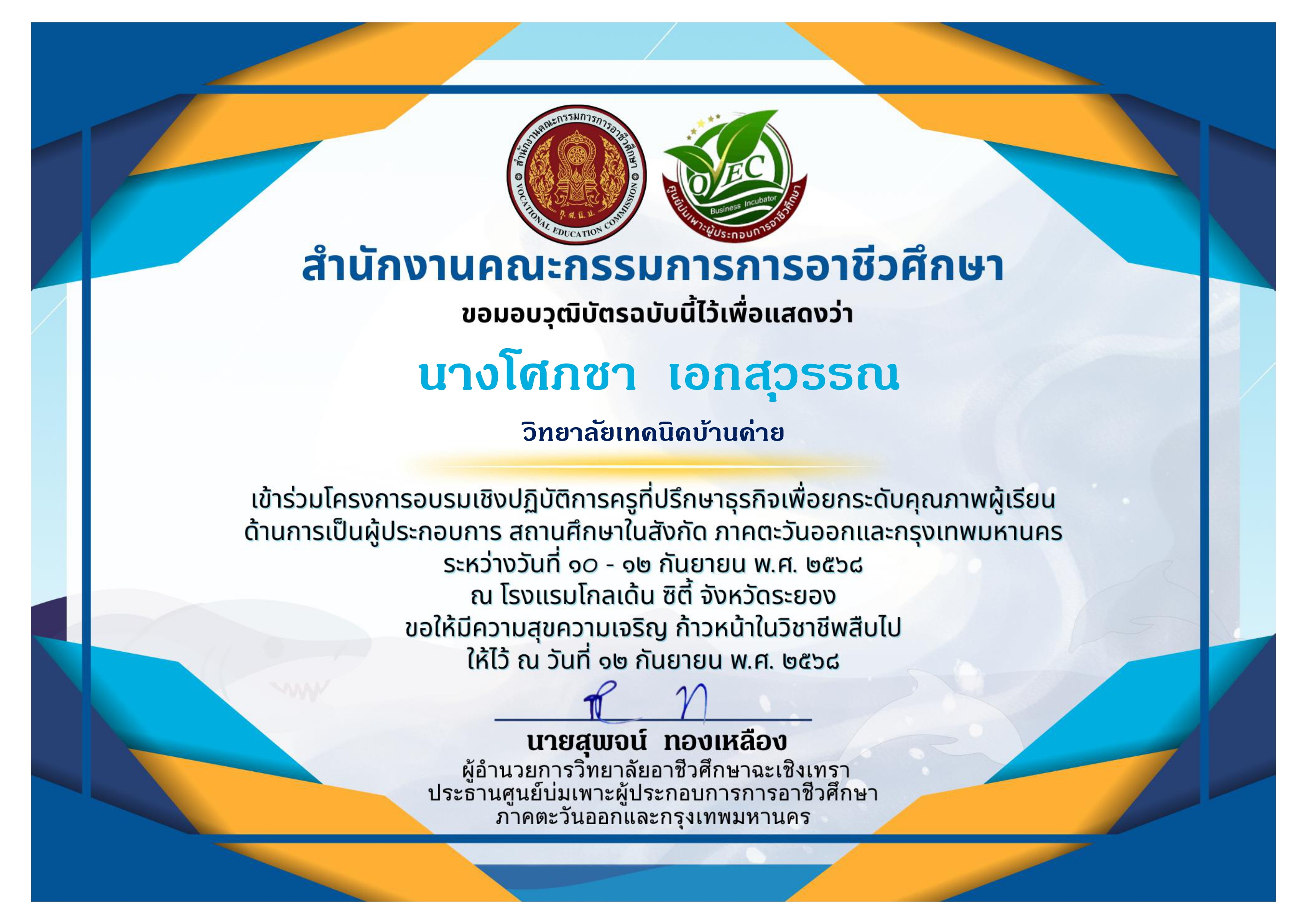2 เดือน ที่ผ่านมาโครงการอบรมพัฒนาศักยภาพผู้เรียนด้านการอบรมการสร้างจิตสำนึกในการเป็นผู้ประกอบการ และการเขียนแผนธุรกิจ ในวันที่ ๕ สิงหาคม ๒๕๖๘ โดยท่านวิทยากร คุณณัชพล โถสกุล ผู้จัดการบริษัทไซเรน คอปอเรชั่น จำกัด เพื่อเป็นการส่งเสริมให้นักเรียน นักศึกษามีความรู้ในเรื่องการเป็นผู้ประกอบการ ณ อาคารอเนกประสงค์ วิทยาลัยเทคนิคบ้านค่าย