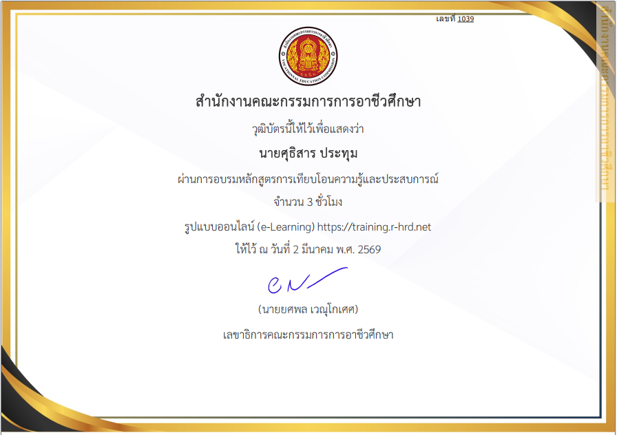 1 สัปดาห์ ที่ผ่านมาเกียรติบัตการอบรบหลักสูตรต่าง ๆ รอบ 4