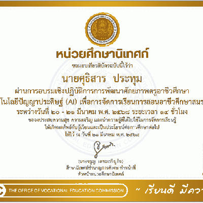 1 เดือน ที่ผ่านมาเข้าร่วมโครงการเสริมสร้างสมรรถนะครูอาชีวศึกษาในการจัดการเรียนรู้ประวัติศาสตร์ชาติไทย