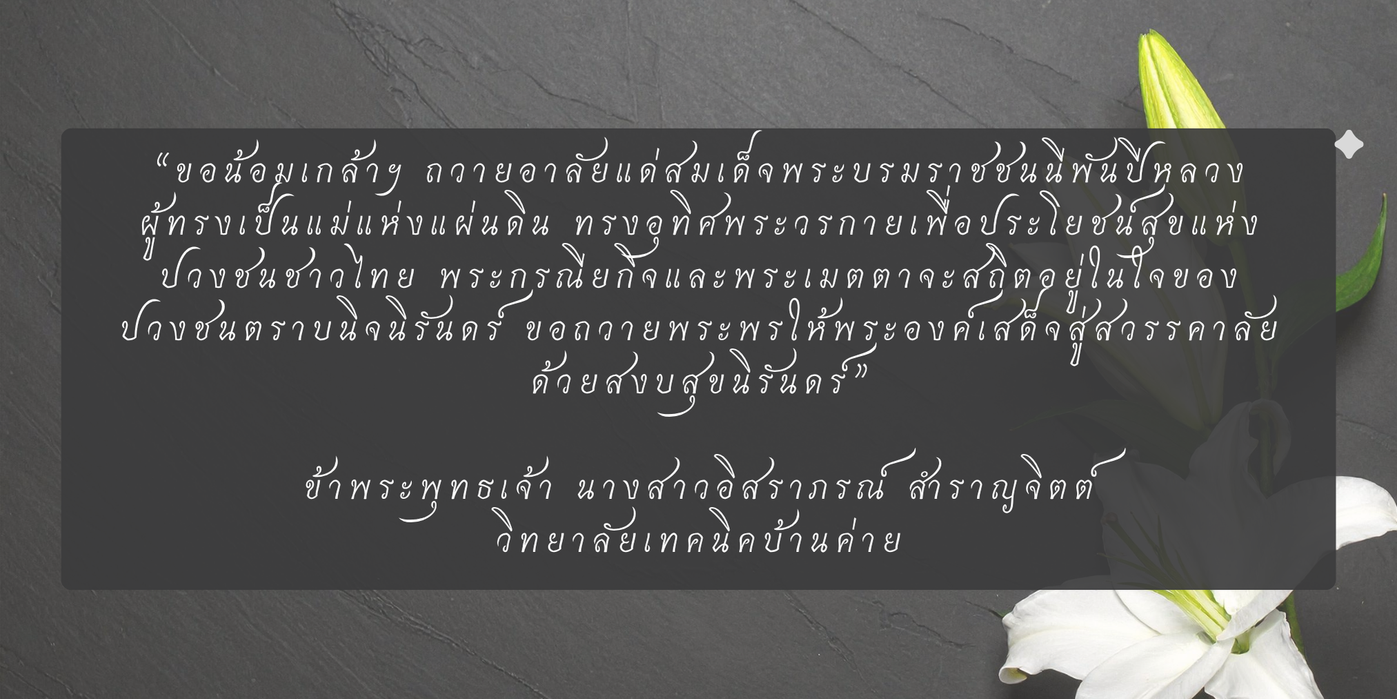 ถวายความอาลัย สมเด็จพระนางเจ้าสิริกิติ์พระบรมราชินีนาถพระบรมราชชนนีพันปีหลวง