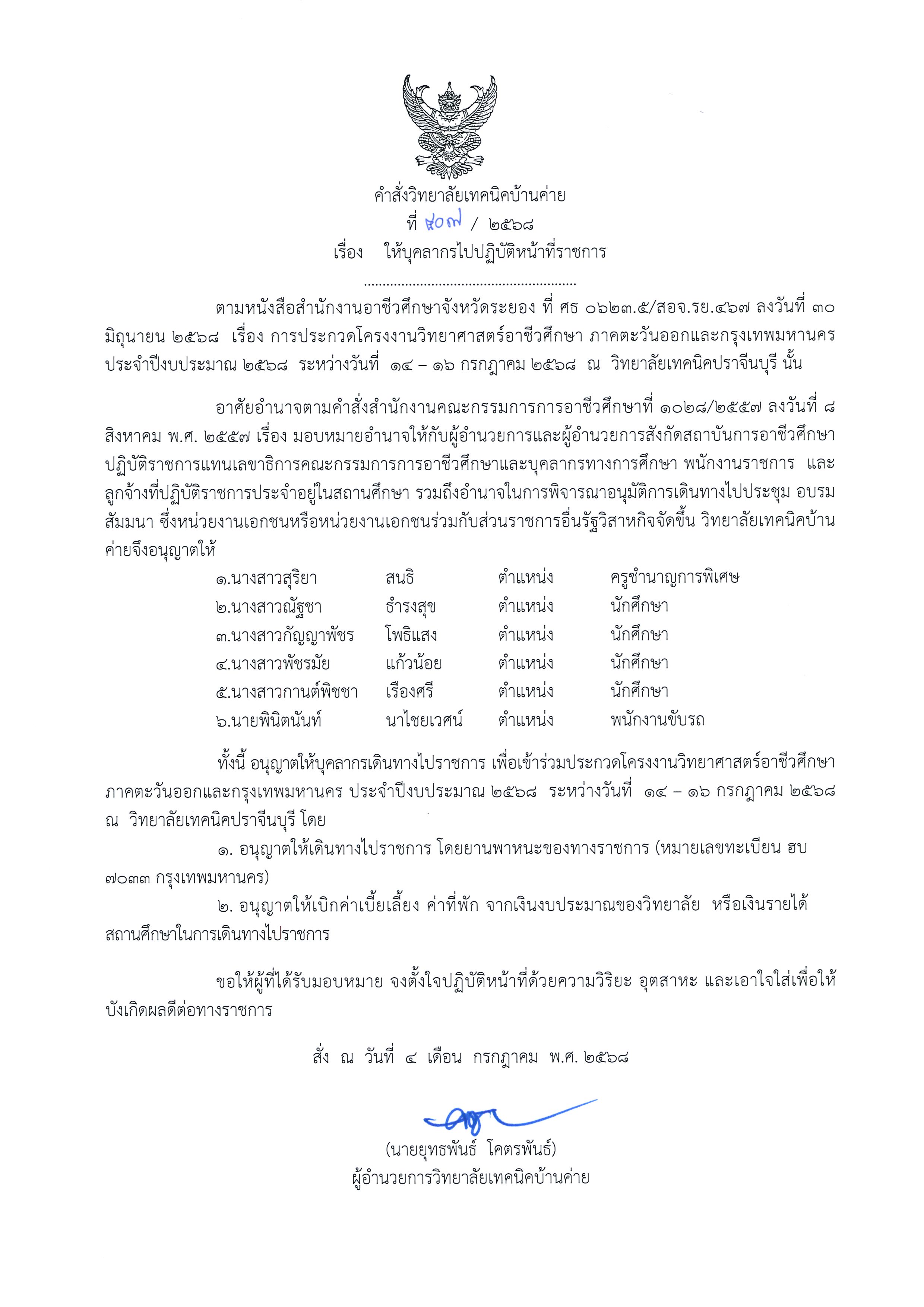 1 ต.ค. 2568 ประชุมเตรียมความพร้อมนักเรียนปวช.2 ก่อนออกฝึกอาชีพ