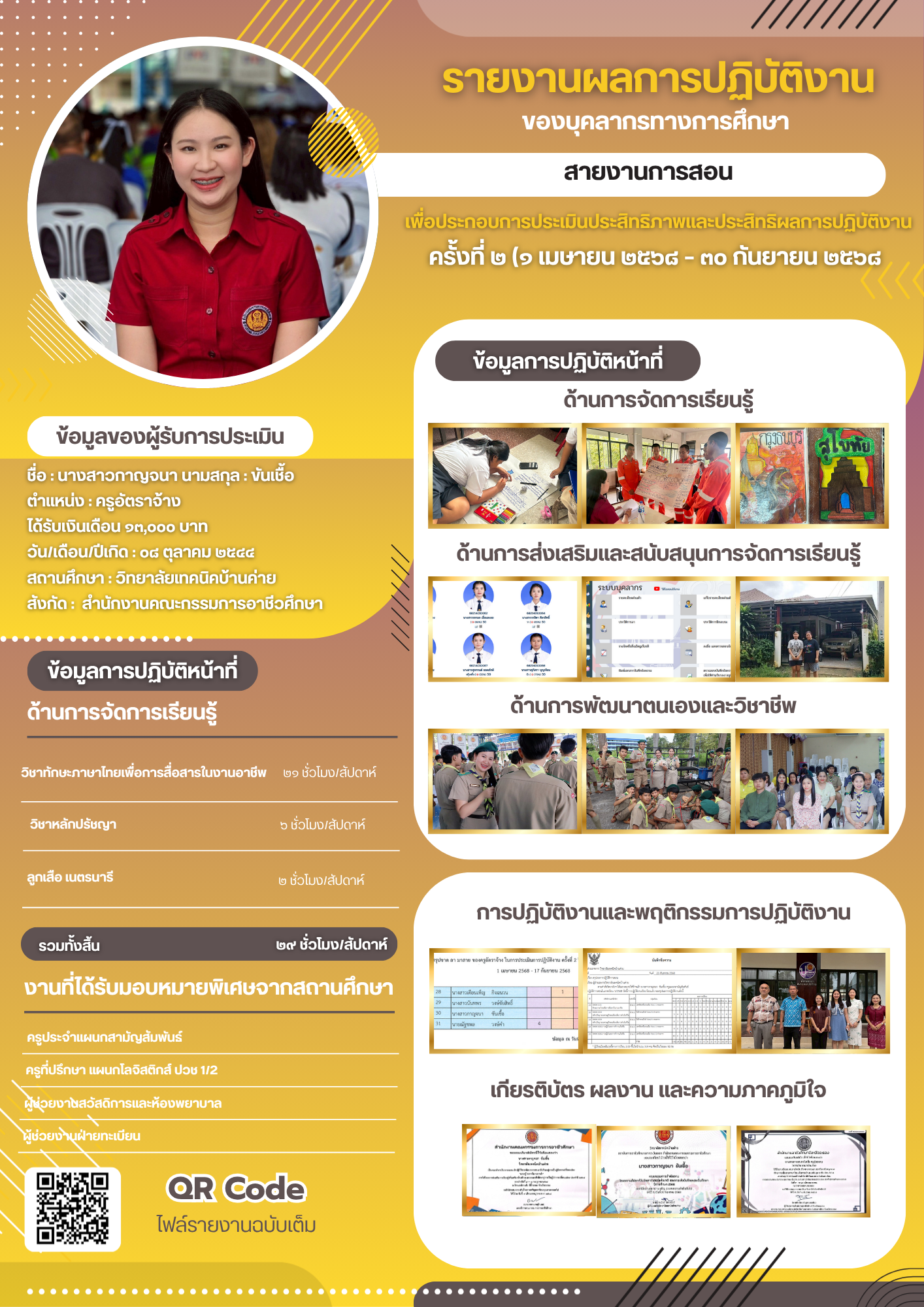 📂รายงานการประเมินประสิทธิภาพและประสิทธิผลการปฏิบัติงานตามมาตรฐานตำแหน่งครูอัตราจ้าง ครั้งที่ 2 (1 เมษายน 2568-30 กันยายน 2568)