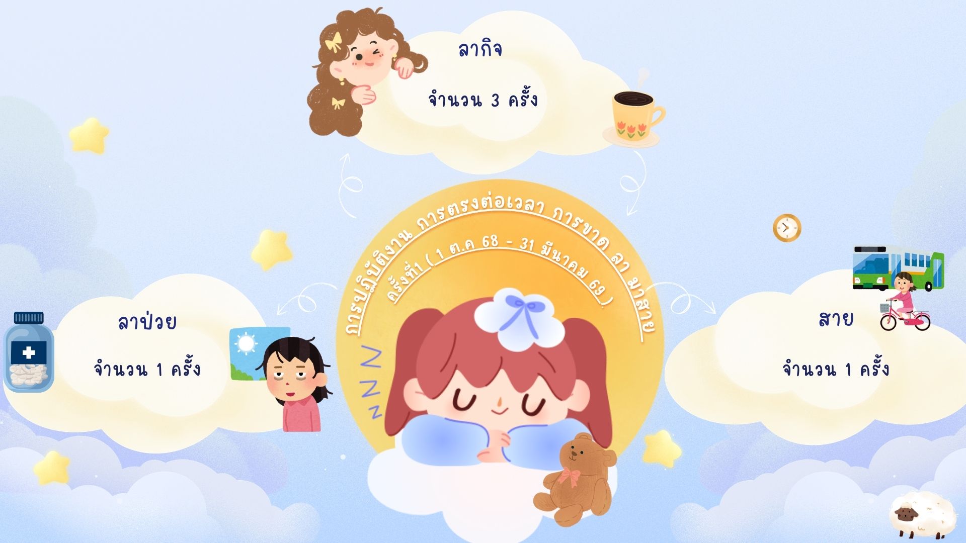 การปฏิบัติงาน การตรงต่อเวลา การขาด ลา มาสาย ครั้งที่1 ( 1 ต.ค. 68 - 31 มี.ค. 69 )