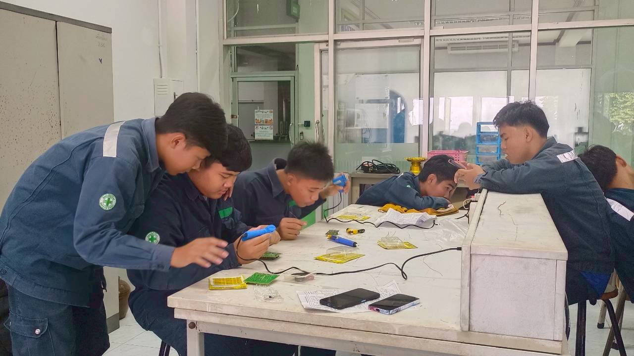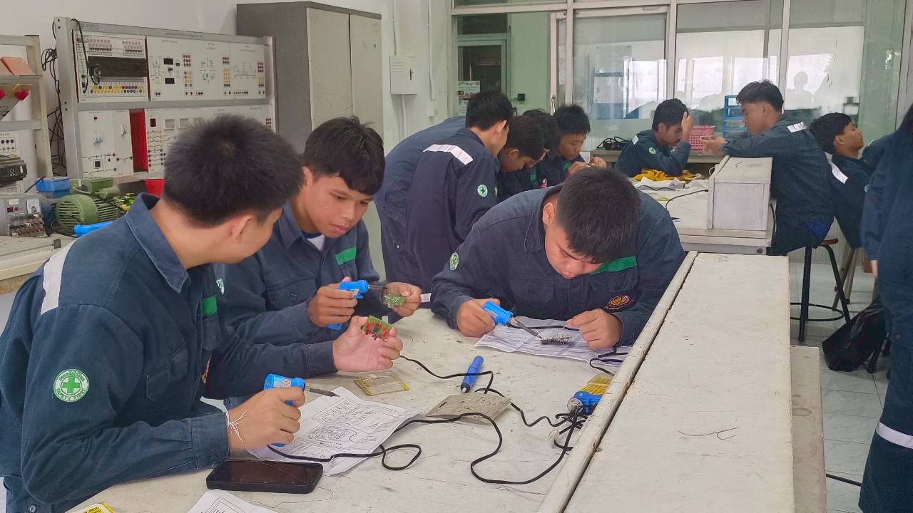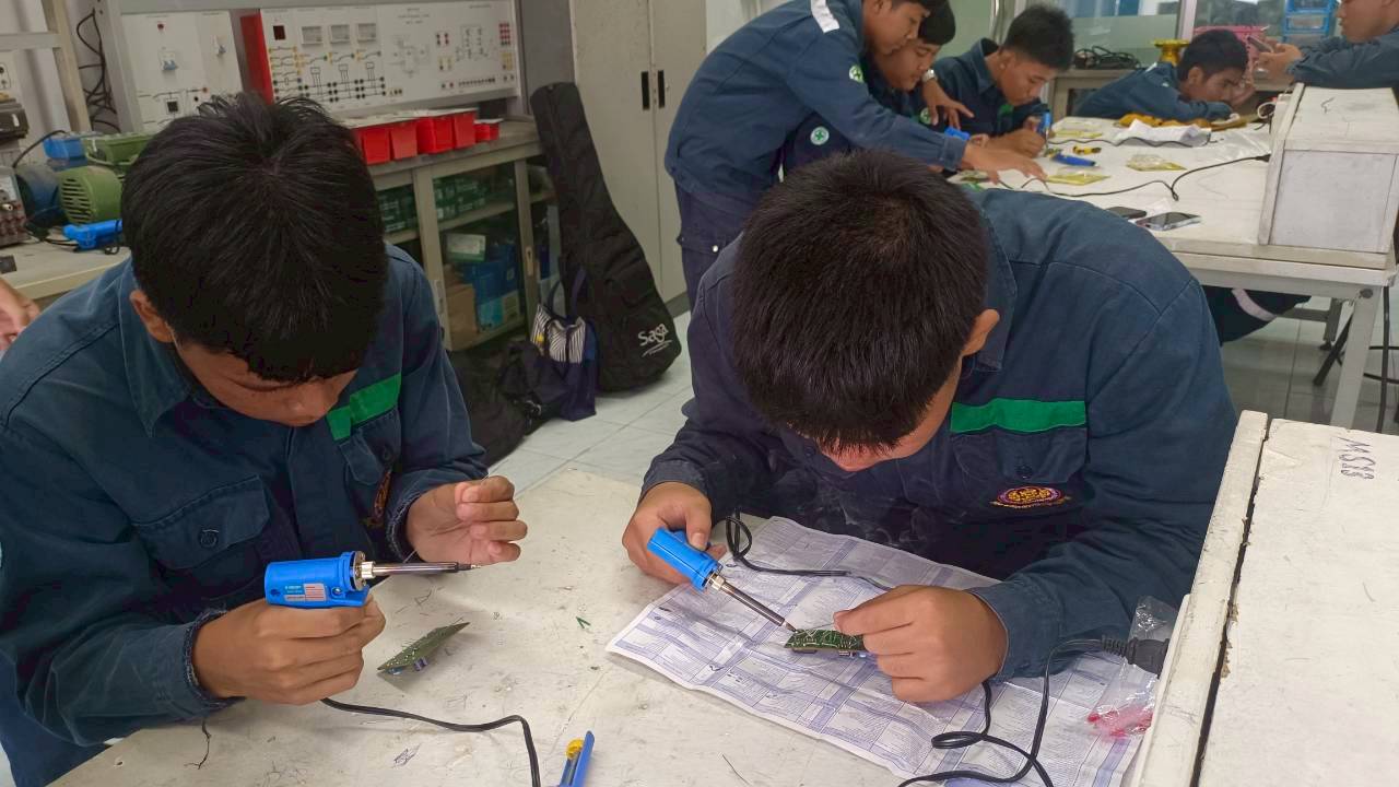 งานบัดกรีวงจรไฟฟ้า แผนกวิชาเครืองมือกลและซ่อมบำรุง