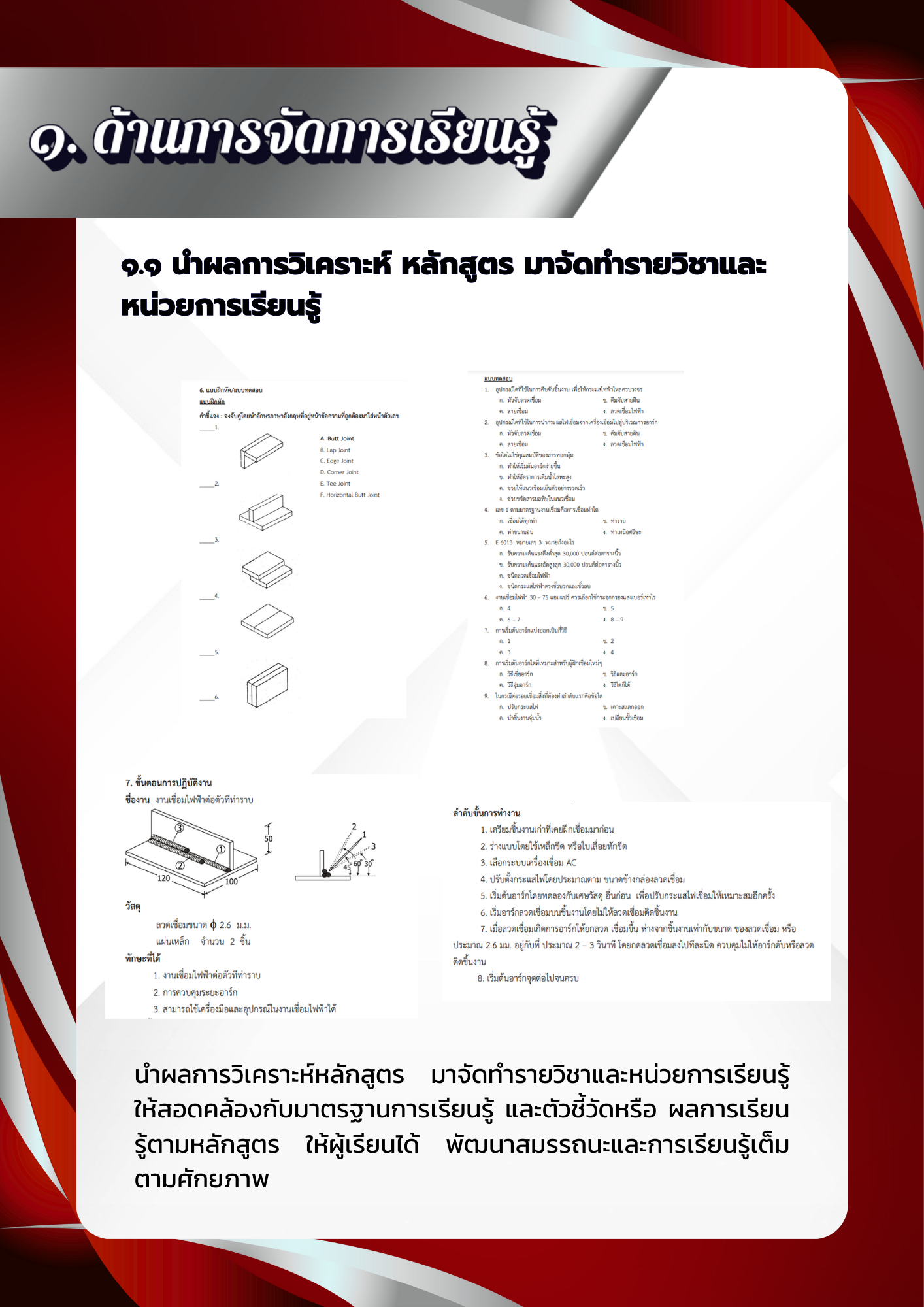 ๑.๑ นำผลการวิเคราะห์ หลักสูตร มาจัดทำรายวิชาและ หน่วยการเรียนรู้