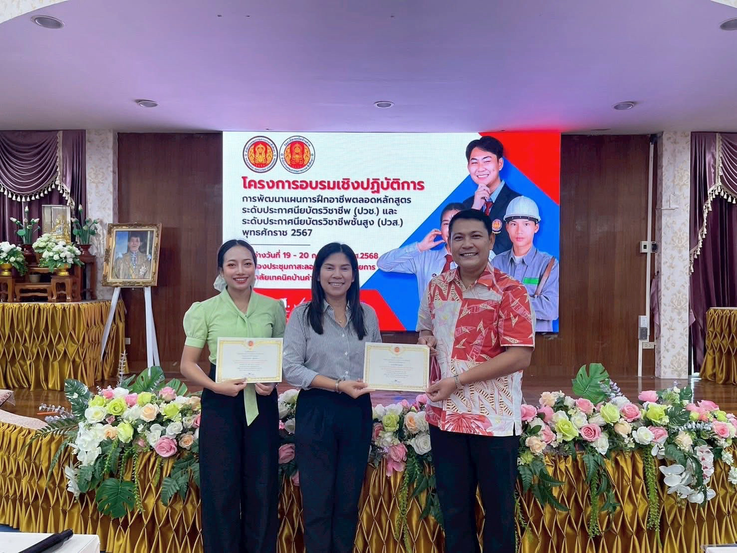 ข้าพเจ้าได้เข้าร่วมโครงการอบรมเชิงปฏิบัติการ “การพัฒนาแผนการฝึกอาชีพตลอดหลักสูตร ปวช. และ ปวส. ประจำปี 2567” ซึ่งเป็นโครงการที่จัดขึ้นเพื่อยกระดับสมรรถนะของครูและบุคลากรทางการศึกษาในการออกแบบแผนการฝึกอาชีพให้มีความสอดคล้องกับมาตรฐานคุณวุฒิอาชีวศึกษา และตอบสนองความต้องการของตลาดแรงงานยุคใหม่