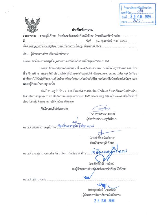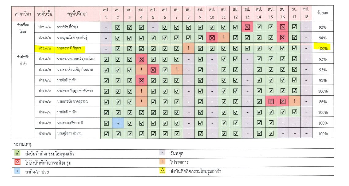 สรุปผลรายงานบันทึกกิจกรรมโฮมรูม