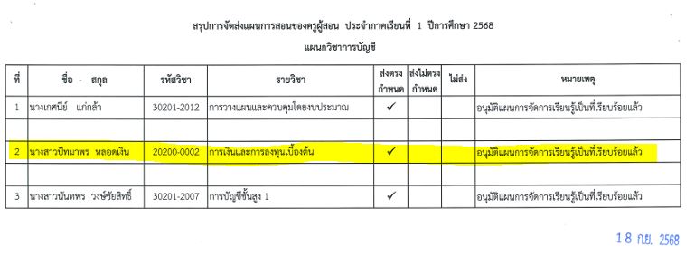 สรุปผลการส่งแผนการเรียนรู้ ภาคเรียนที่ 1/2568