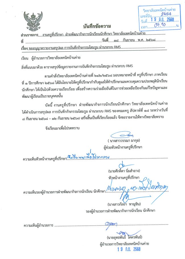 สรุปผลรายงานบันทึกกิจกรรมโฮมรูม