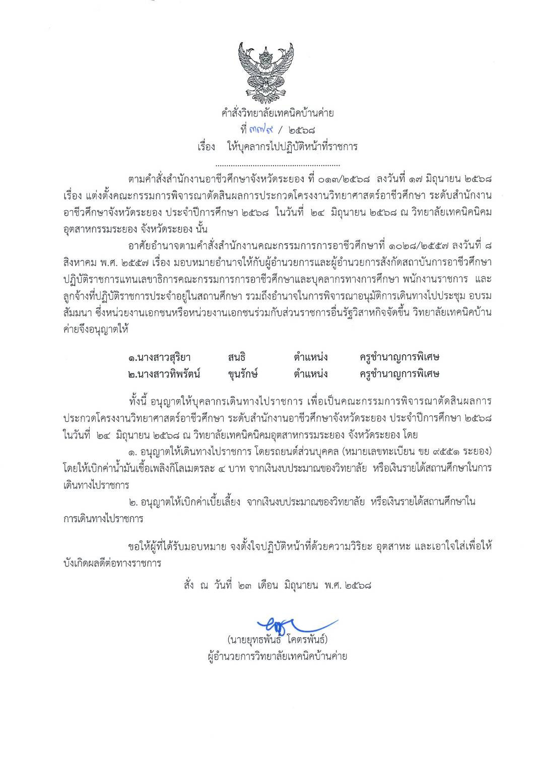 yes คำสั่งปฏิบัติหน้าที่ในสถานศึกษา