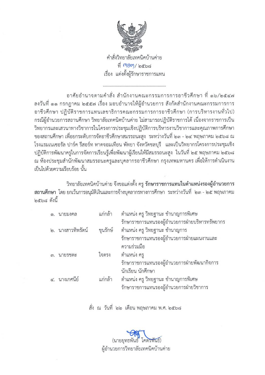 yes คำสั่งแต่งตั้งครูรักษาราชการแทนตำแหน่งรอผู้อำนวยการสถานศึกษา