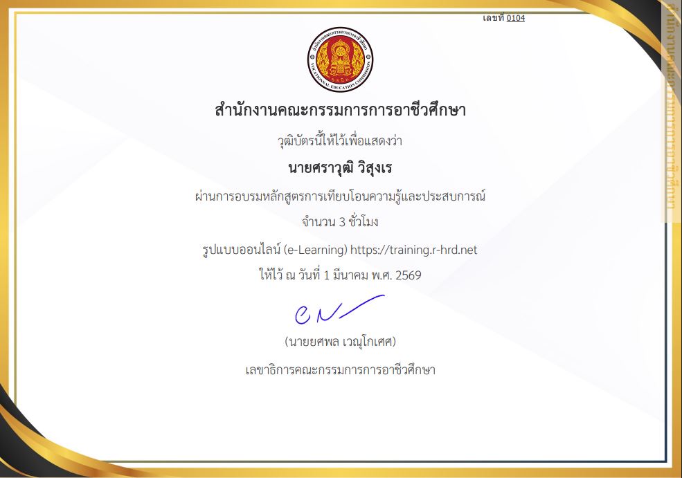 ผ่านการอบรมการเทียบโอนความรู้และประสบการณ์