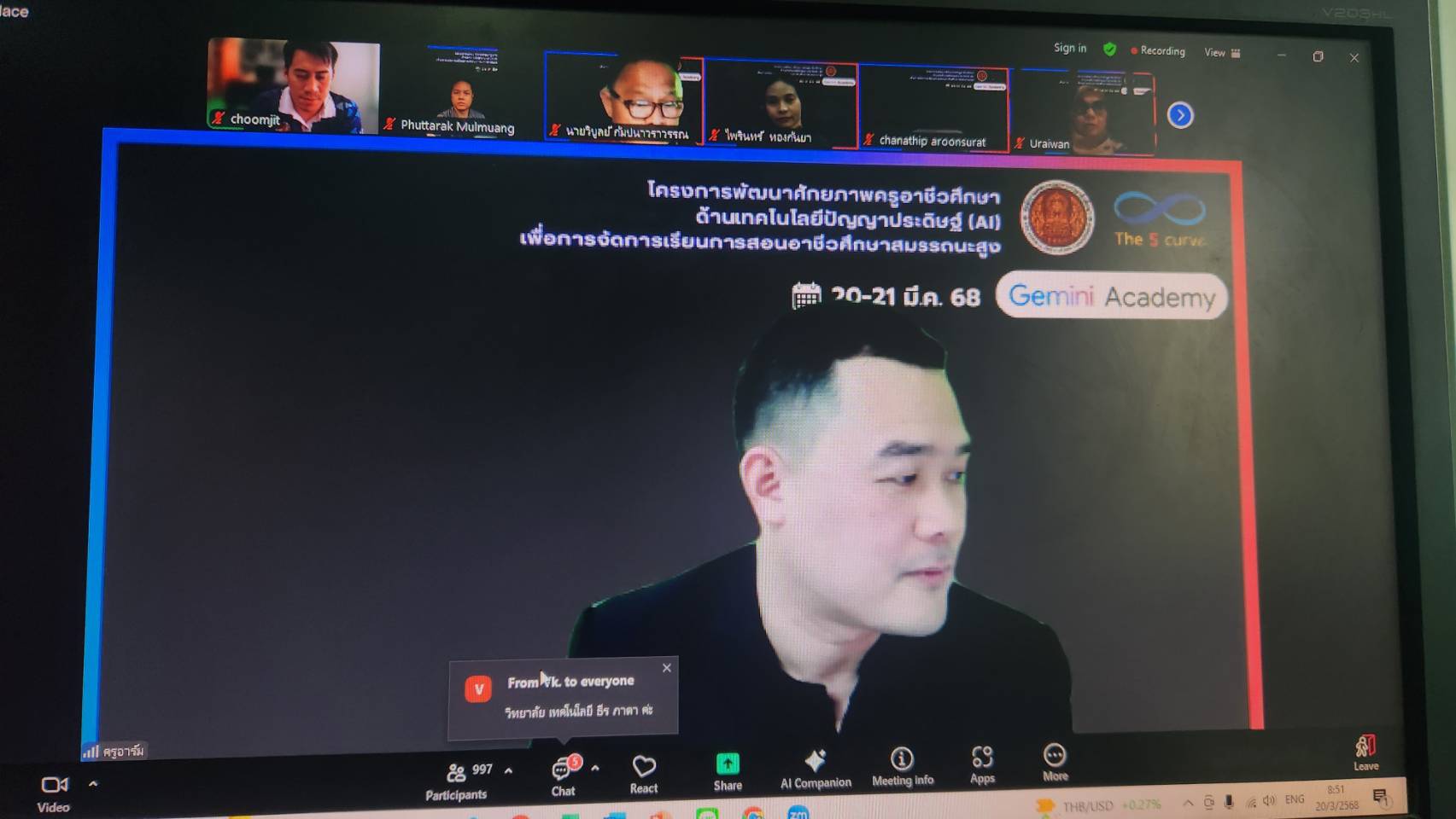 แสดงถึงความสนใจในวิทยาการใหม่ๆด้านการศึกษา โครงการศักยภาพครูอาชีวศึกษาด้านเทคโนโลยีปัญญาประดิษฐ์ (AI)