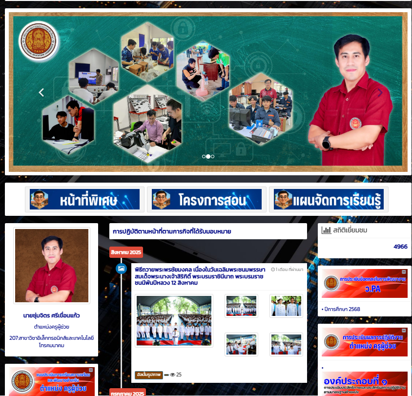 - น้อมนำหลักหลักปรัชญาเศรษฐกิจพอเพียง มาสอดแทรกการจัดการเรียนรู้ รวมทั้งงานที่ได้รับมอบหมาย เพื่อให้งานมีประสิทธิภาพและบรรลุตามวัตถุประสงค์ที่ตั้งไว้ และปฏิบัติตนเป็นแบบอย่างที่ดีกับศิษย์ ใช้ชีวิตบนทางสายกลาง ยึดมั่นในหลักปรัชญาเศรษฐกิจพอเพียงอยู่เสมอ