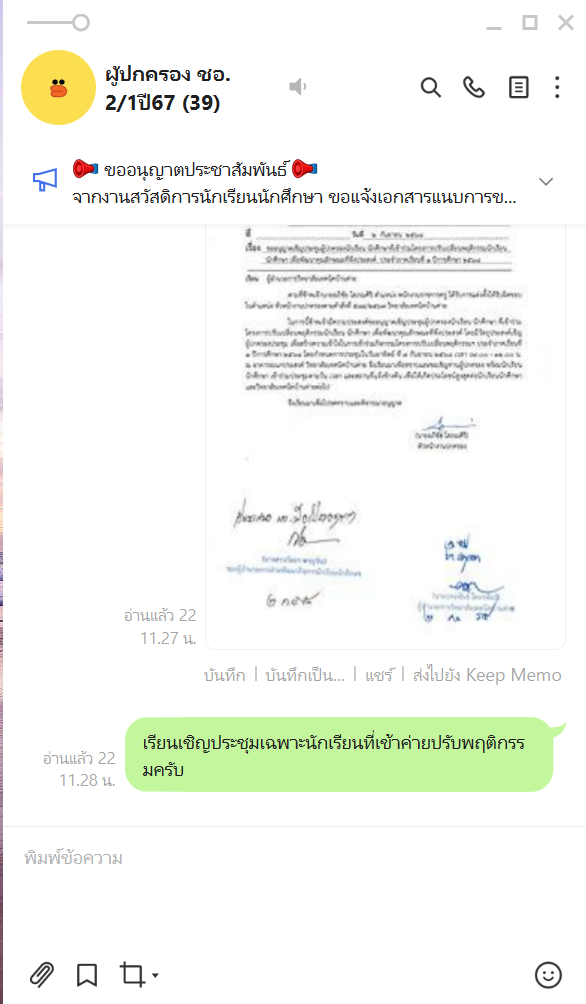 Line กลุ่มผู้ปกครองในที่ปรึกษา