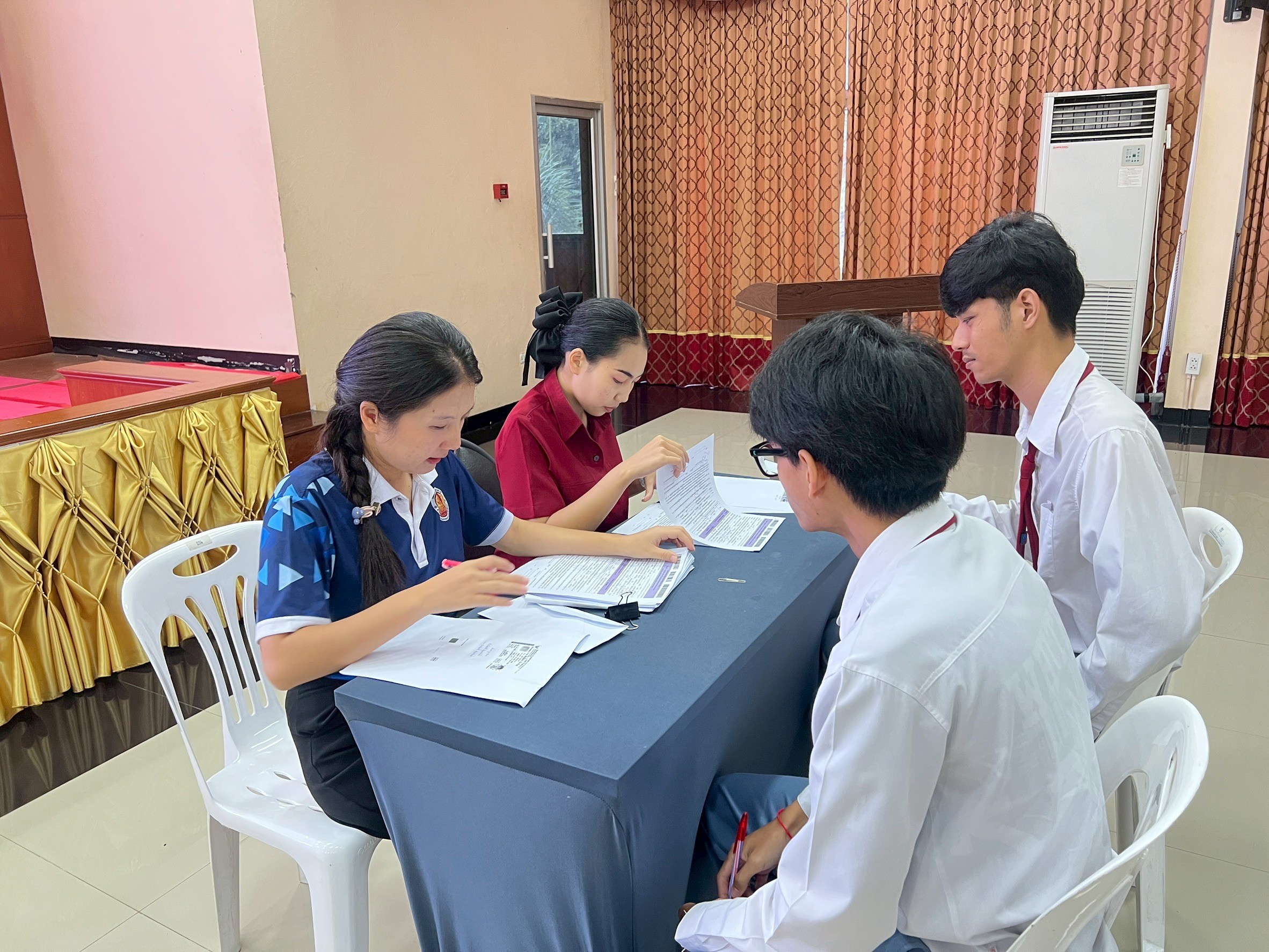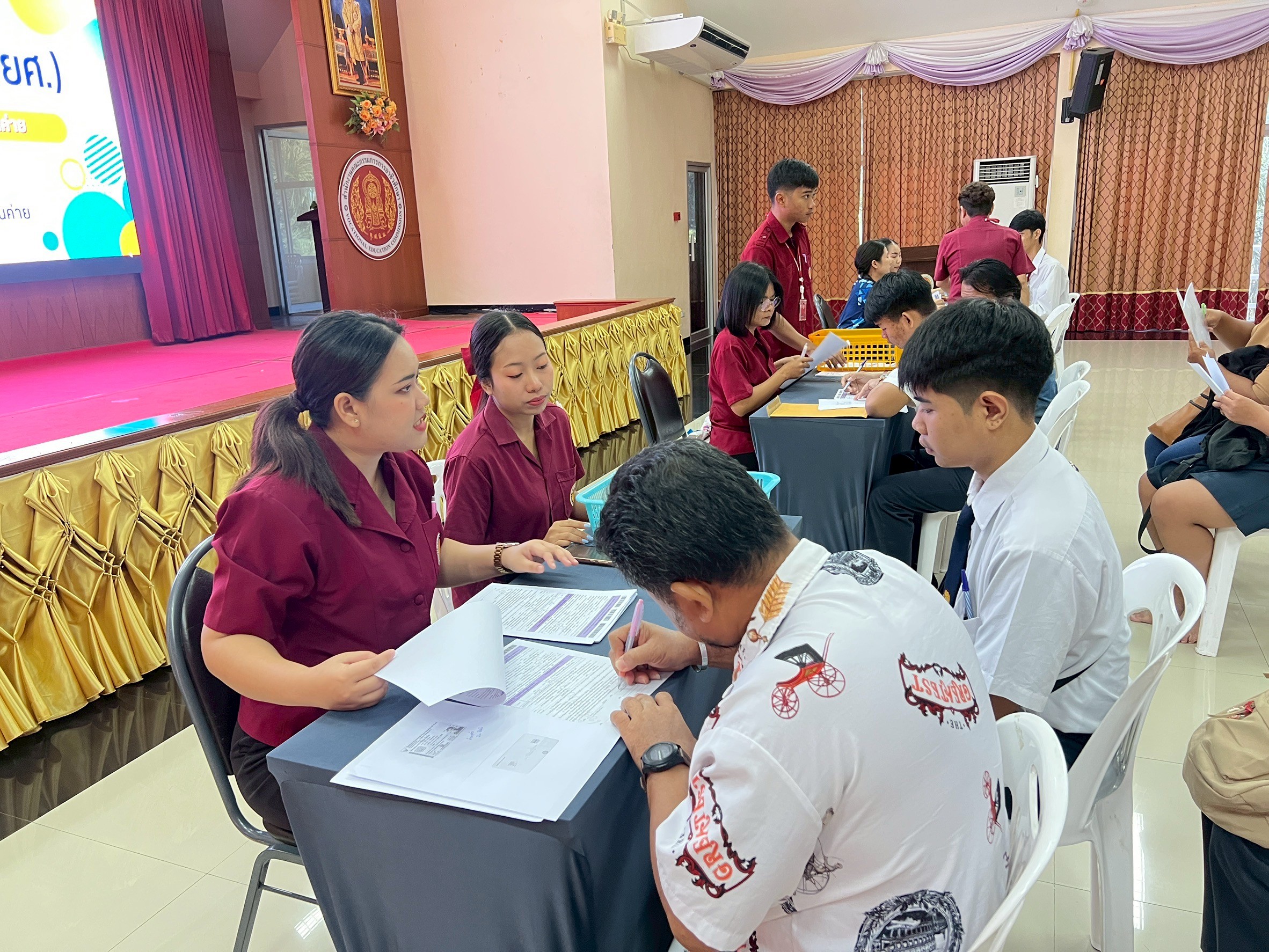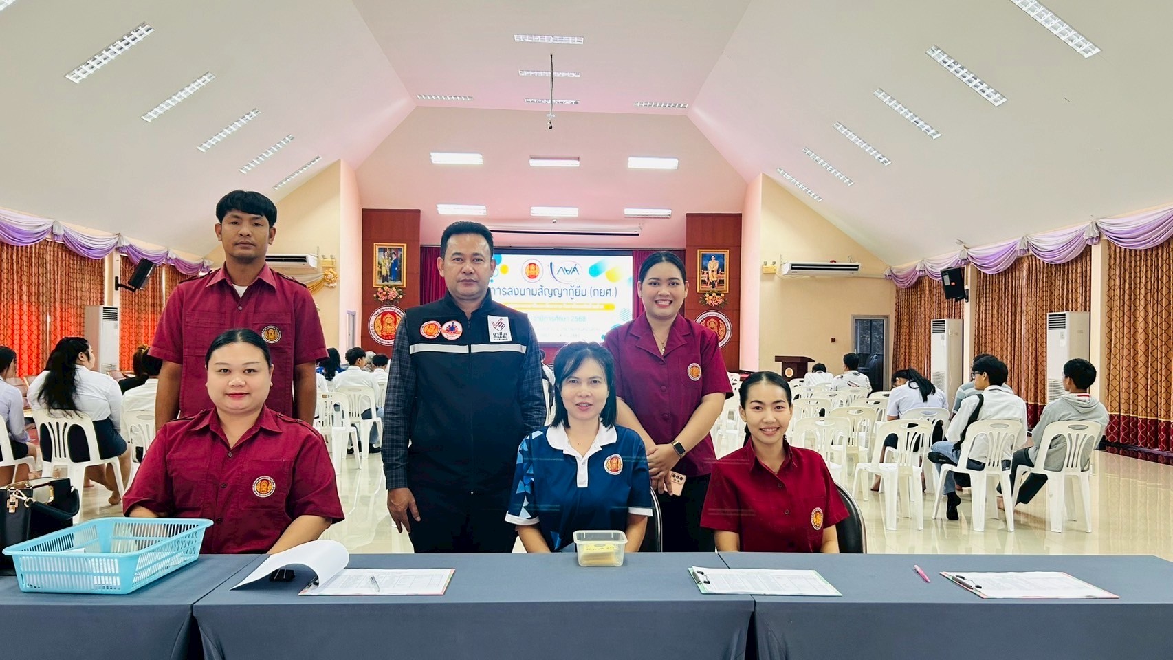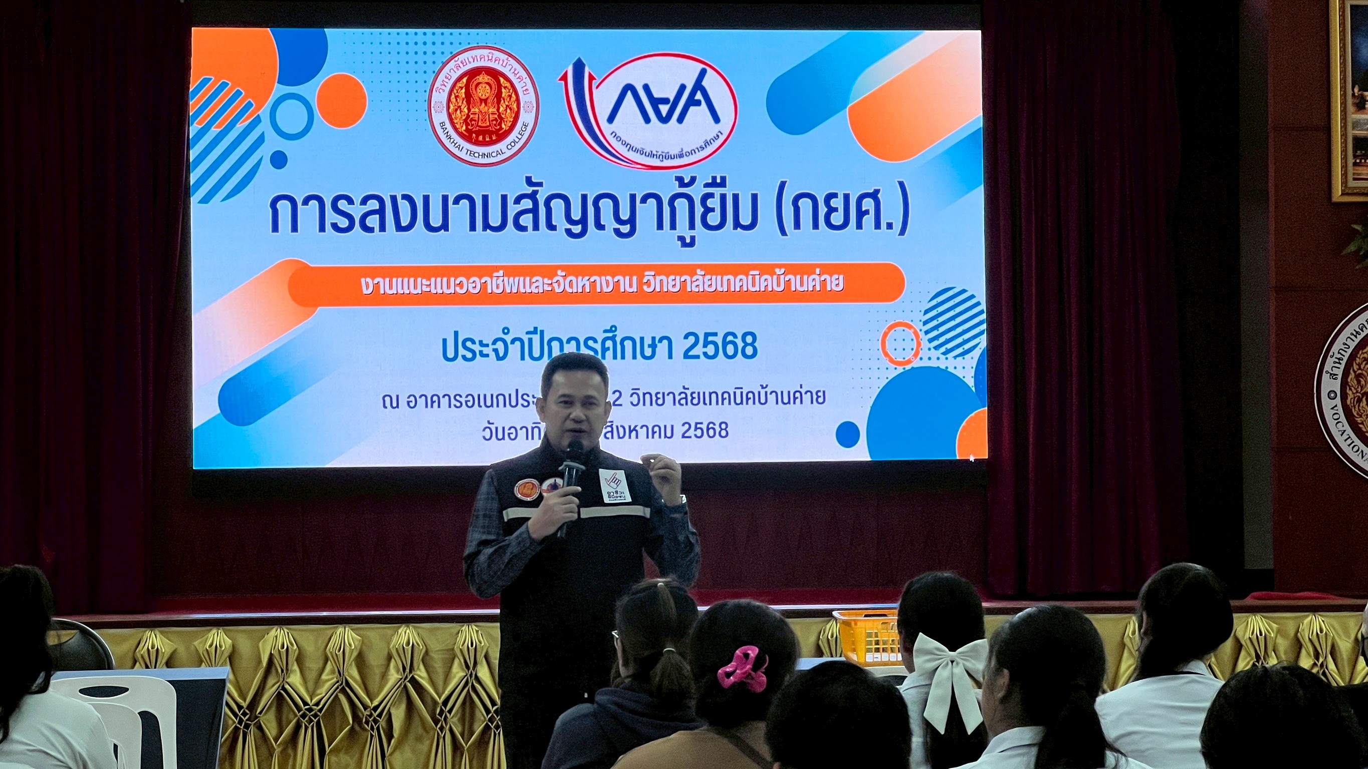 การลงนามสัญญากองทุนกู้ยืมเพื่อการศึกษา (กยศ.) ผู้กู้รายเก่าต่อเนื่อง ประจำภาคเรียนที่ 1 ปีการศึกษา 2568 ในวันที่ 3 สิงหาคม 2568 ณ อาคารอเนกประสงค์ วิทยาลัยเทคนิคบ้านค่าย