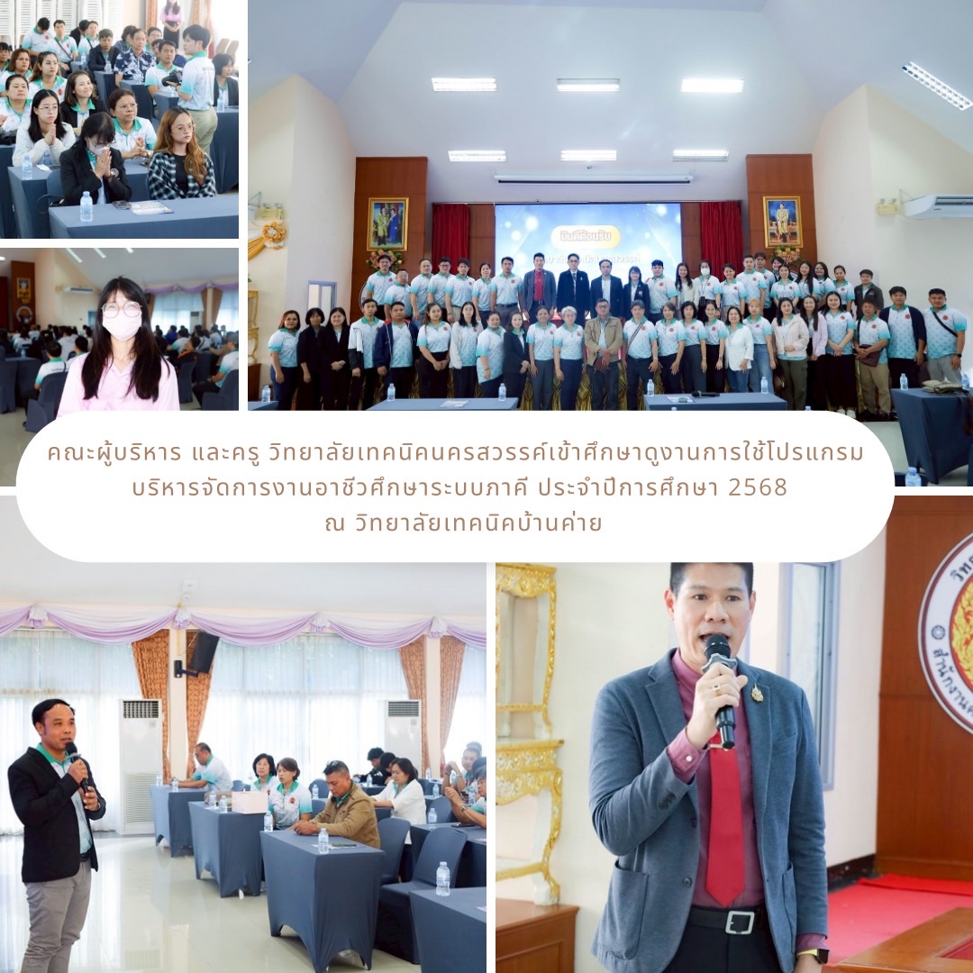 คณะผู้บริหาร และครู วิทยาลัยเทคนิคนครสวรรค์เข้าศึกษาดูงานการใช้โปรแกรม บริหารจัดการงานอาชีวศึกษาระบบภาคี ประจำปีการศึกษา 2568 ณ วิทยาลัยเทคนิคบ้านค่าย