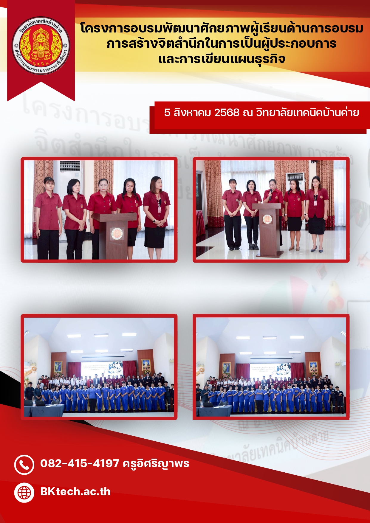 โครงการอบรมพัฒนาศักยภาพผู้เรียนด้านการอบรมการสร้างจิตสำนึกในการเป็นผู้ประกอบการและการเขียนธุรกิจ