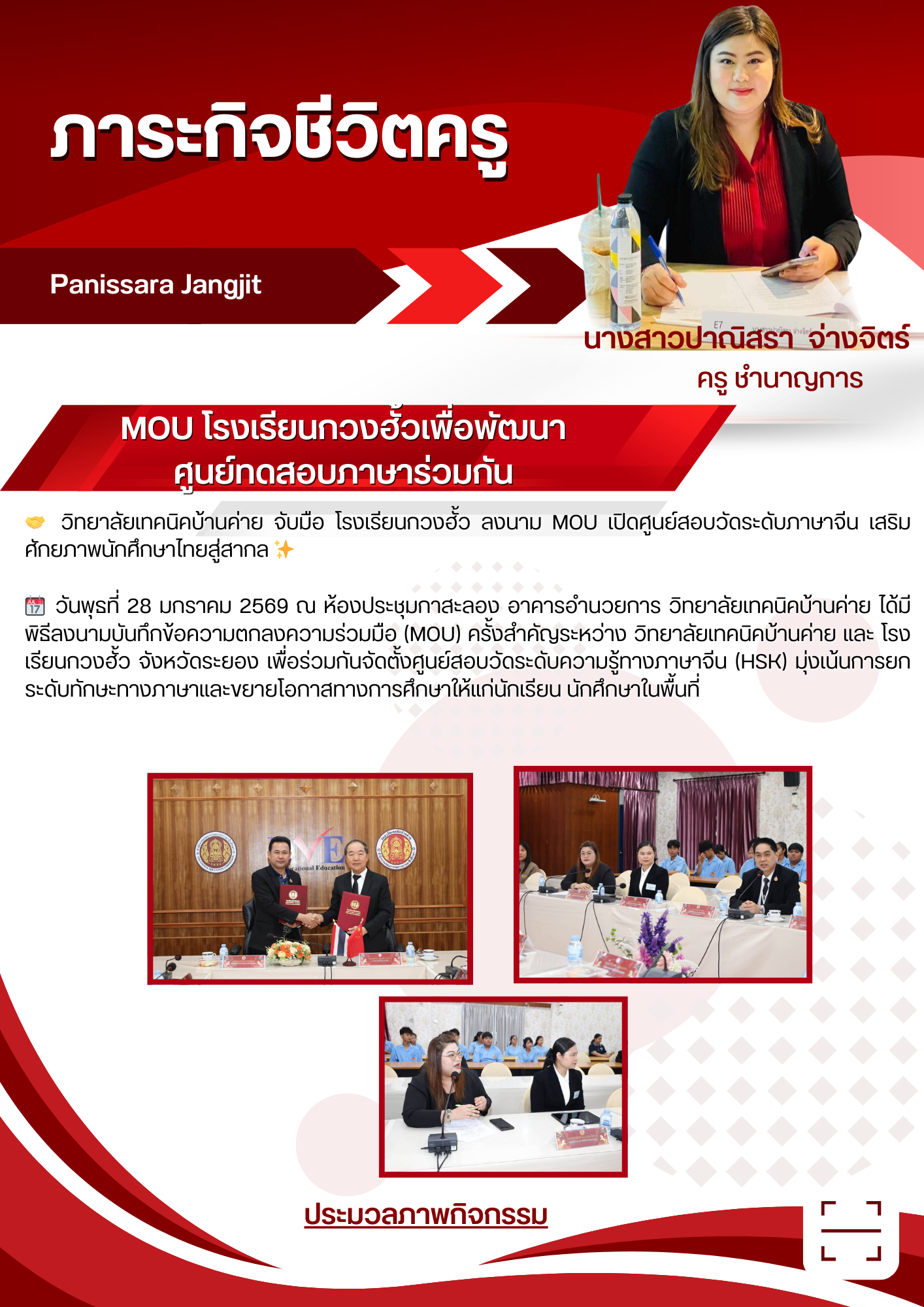 วิทยาลัยเทคนิคบ้านค่าย จับมือ โรงเรียนกวงฮั้ว ลงนาม MOU เปิดศูนย์สอบวัดระดับภาษาจีน เสริมศักยภาพนักศึกษาไทยสู่สากล ✨ 📆 วันพุธที่ 28 มกราคม 2569 ณ ห้องประชุมกาสะลอง อาคารอำนวยการ วิทยาลัยเทคนิคบ้านค่าย ได้มีพิธีลงนามบันทึกข้อความตกลงความร่วมมือ (MOU) ครั้งสำคัญระหว่าง วิทยาลัยเทคนิคบ้านค่าย และ โรงเรียนกวงฮั้ว จังหวัดระยอง เพื่อร่วมกันจัดตั้งศูนย์สอบวัดระดับความรู้ทางภาษาจีน (HSK) มุ่งเน้นการยกระดับทักษะทางภาษาและขยายโอกาสทางการศึกษาให้แก่นักเรียน นักศึกษาในพื้นที่