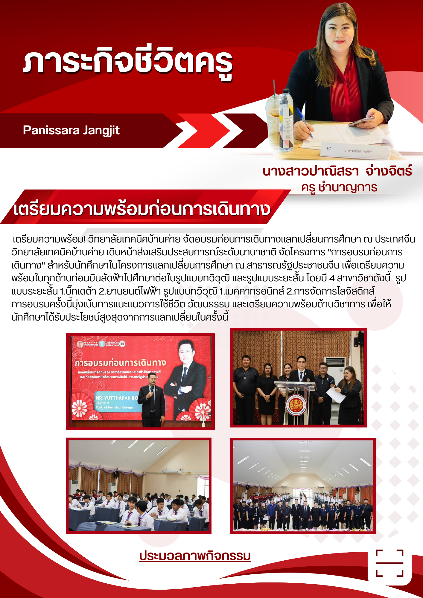 เตรียมความพร้อม! วิทยาลัยเทคนิคบ้านค่าย จัดอบรมก่อนการเดินทางแลกเปลี่ยนการศึกษา ณ ประเทศจีน 🇨🇳🎓 วิทยาลัยเทคนิคบ้านค่าย เดินหน้าส่งเสริมประสบการณ์ระดับนานาชาติ จัดโครงการ 'การอบรมก่อนการเดินทาง' สำหรับนักศึกษาในโครงการแลกเปลี่ยนการศึกษา ณ สาธารณรัฐประชาชนจีน เพื่อเตรียมความพร้อมในทุกด้านก่อนบินลัดฟ้าไปศึกษาต่อในรูปแบบทวิวุฒิ และรูปแบบระยะสั้น โดยมี 4 สาขาวิชาดังนี้ รูปแบบระยะสั้น 1.บิ๊กเดต้า 2.ยานยนต์ไฟฟ้า รูปแบบทวิวุฒิ 1.เมคคาทรอนิกส์ 2.การจัดการโลจิสติกส์ การอบรมครั้งนี้มุ่งเน้นการแนะแนวการใช้ชีวิต วัฒนธรรม